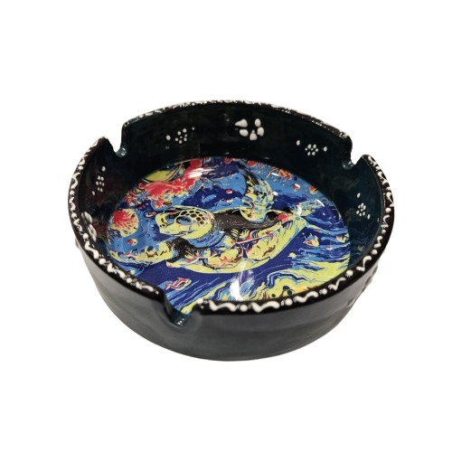 Купичка за ядки, Костенурки, Керамична, Ръчно рисувана, Син/Тъмно син, 8см/диаметър