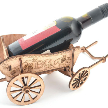 Дървена Каручка, С Бутилка вино 187 мл., Дървена, 25х9.5х10 см