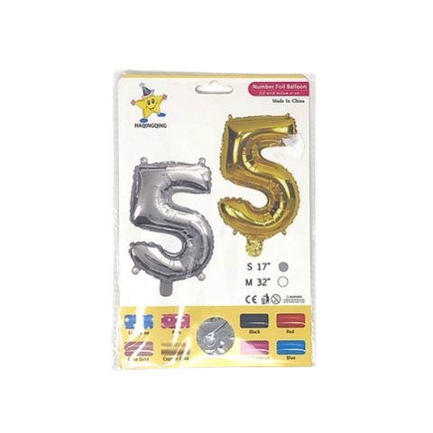 Фолиев балон, 40 см, златен/сребърен,цифра 5