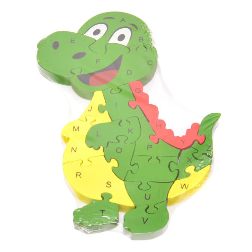 Пъзел Динозавър, С букви и цифри, Дървен, 26 части, Многоцветен