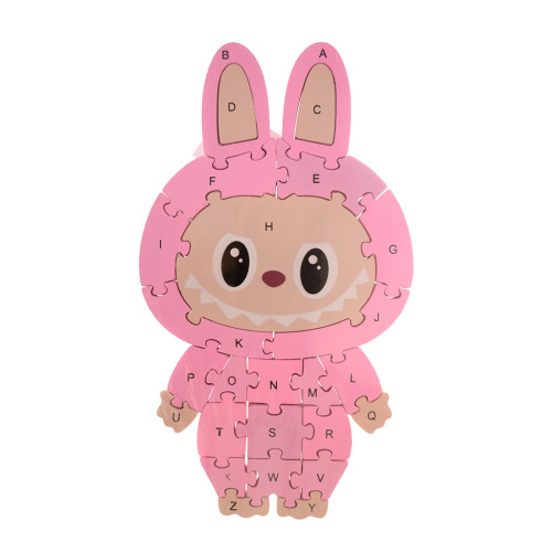 Пъзел Лабуб, С букви и цифри, Дървен, 26 части, Розово