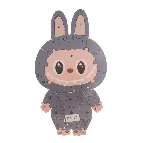 Пъзел Лабуб, С букви и цифри, Дървен, 26 части, Сив