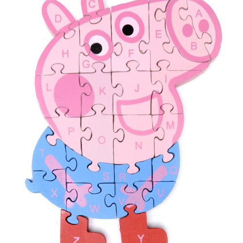 Пъзел Пепа пиг, Джордж, С букви и цифри, Дървен, 26 части, Многоцветен